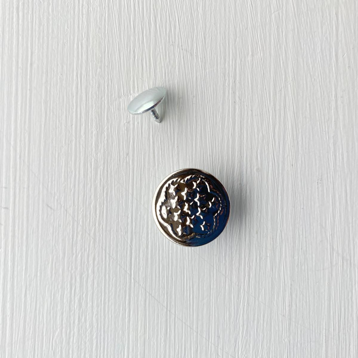 Couleur acier, avec des étoiles sur le dessus. il fait 15 mm de diamètre.