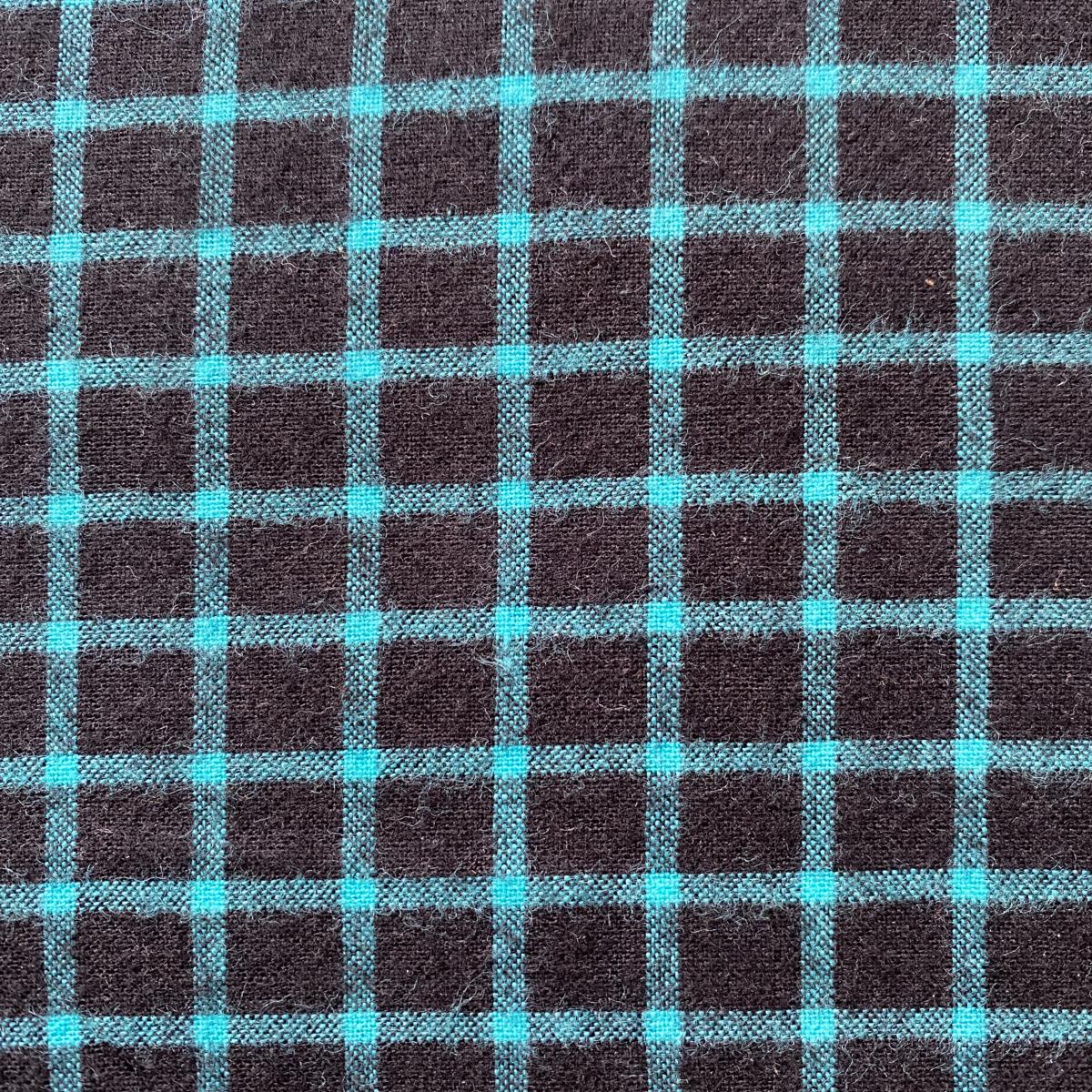 Flanelle 100% coton, très douce. Carreaux noir foncé et turquoise. Les carreaux noirs font 1 x 1 cm