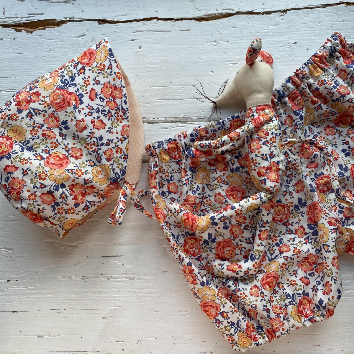 Si vous souhaitez faire un cadeau de naissance original, vous pouvez rajouter le bloomer et la petite souris dans les tissus coordonnés