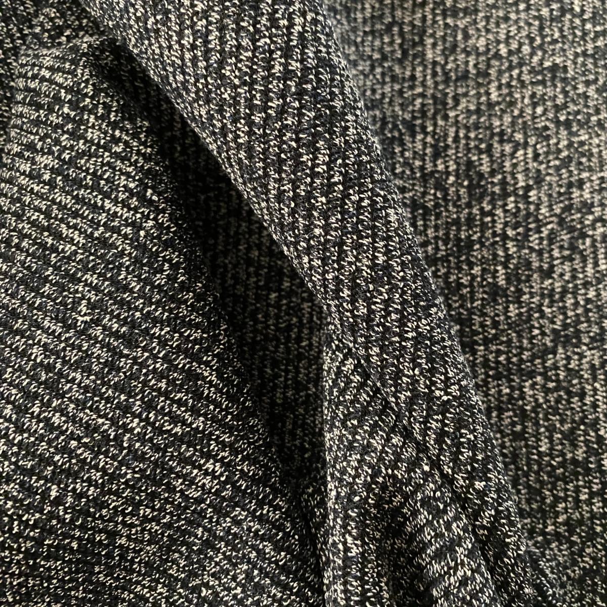 Matière polyvalente, sorte de faux lainage trame maille. Convient aussi bien pour la fabrication d'une veste que d'un pantalon ou un top. Anthracite chiné