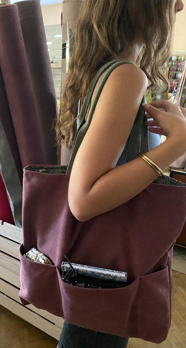 De l'autre côté une grande poche est compartimentée pour accueillir un carnet, des marqueurs ou arrête mailles ...